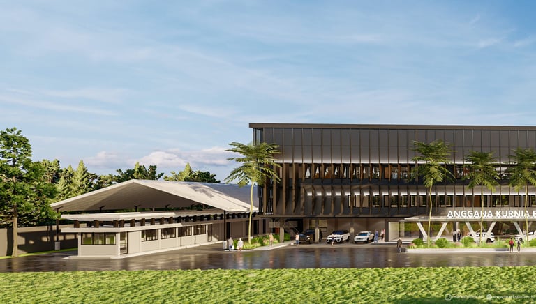 AKP Office adalah bangunan kantor tekstil yang modern dan berkelas, dirancang oleh Makstudios Architect dengan kombinasi bahan-bahan mutakhir seperti Aluminium Composite Panel (ACP), kaca, dan expanded metal. Desain arsitektur ini mencerminkan estetika kontemporer dan fungsionalitas tinggi, menciptakan lingkungan kerja yang inspiratif dan efisien.
