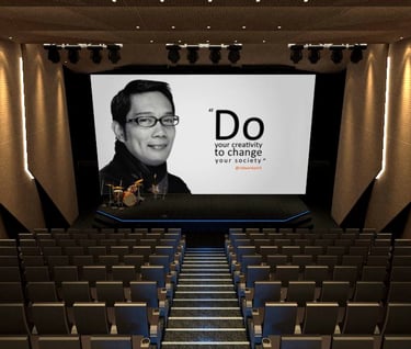 Desainnya sederhana namun fungsional, memadukan kenyamanan, efisiensi, dan pengalaman audiovisual. Auditorium ini menjadi pusat pertemuan yang intim dan representatif bagi ekosistem kreatif Bandung.