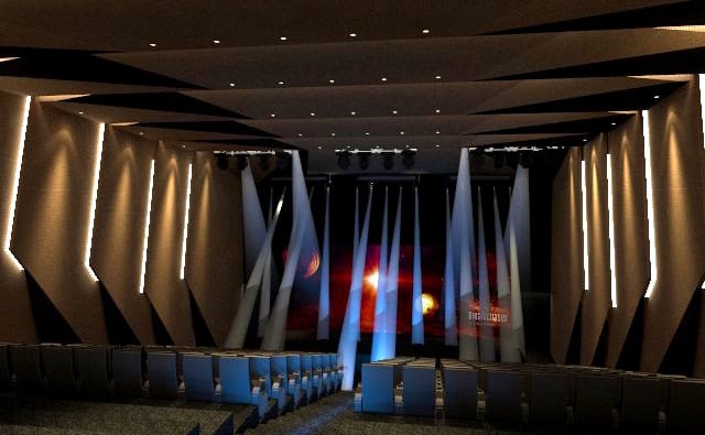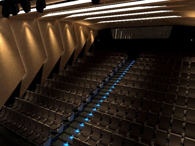 Secara arsitektural, ruang ini mengutamakan akustik yang baik, dengan penggunaan material peredam suara dan panel interior yang mencegah gema. Pencahayaan dibuat fleksibel — bisa terang untuk seminar, atau gelap untuk pemutaran film.