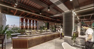 Sebagai spesialis berpengalaman dalam desain restoran, Markstudios Architect memahami pentingnya menciptakan pengalaman ruang yang unik dan nyaman bagi para pelanggan. Kami menggabungkan elemen-elemen desain modern dengan sentuhan unik yang mencerminkan identitas dan visi klien. Setiap proyek dirancang dengan detail yang cermat, memastikan bahwa tata letak, pencahayaan, dan material yang digunakan untuk mendukung estetika, kenyamanan dan efisiensi operasional.