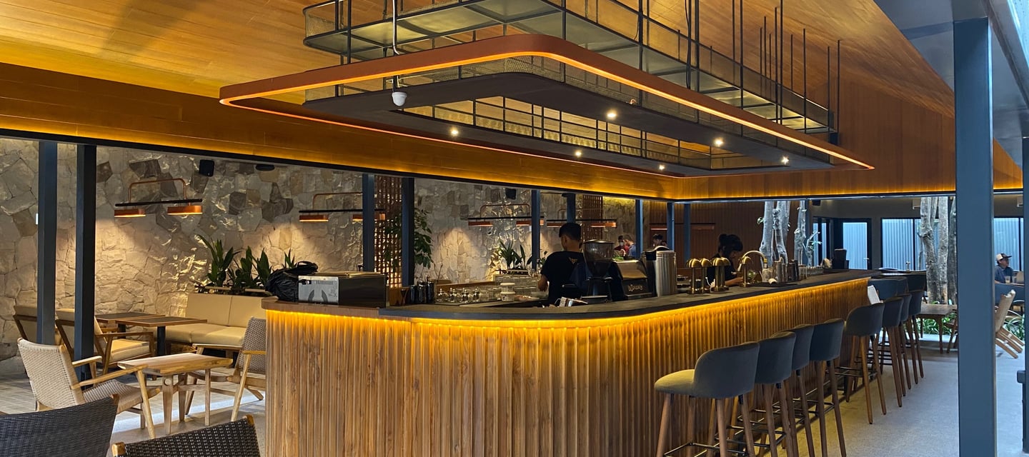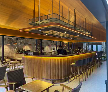 Markstudios Architect, sebagai arsitek spesialis restoran, memastikan Restoran Lui menawarkan pengalaman bersantap yang nyaman dan menyatu dengan alam..